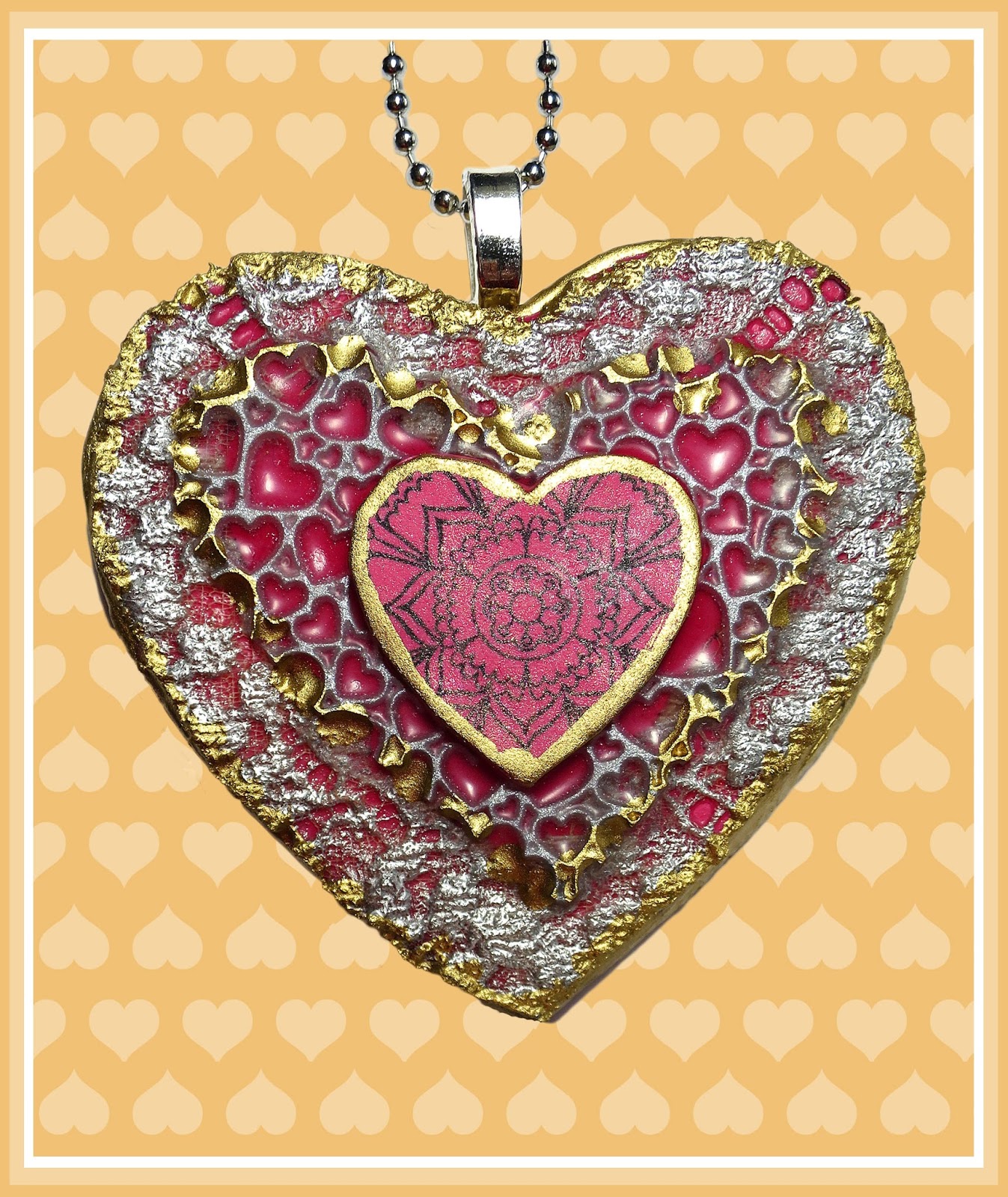 Today, Patricia Krauchune shares this fabulous pendant created using the January "Love & Lace" Create Along Box! Pat used the heart cutter, vintage lace, and the heart pattern on the Magic Transfer paper included in the Love & Lace box. The box also included shimmering pink mica powder, a silkscreen, and a brand new item offered by Create Along - a Deco Disc! Pat used Sculpey® Souffle polymer clay, as well as clear and silver liquid polymer clay. Learn more about the monthlyCreate Along box here! AND - there are a limited number of the amazing Love & Lace January Create Along Boxes still available! Order yours here.