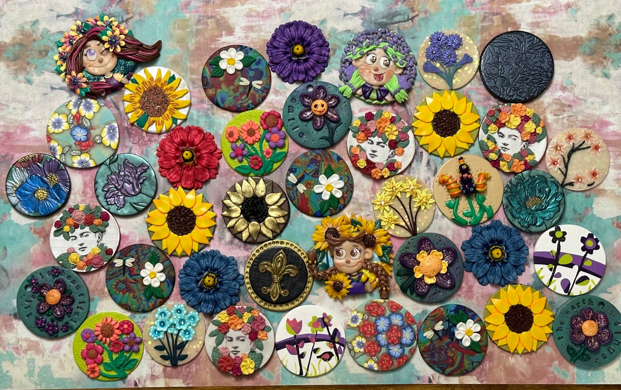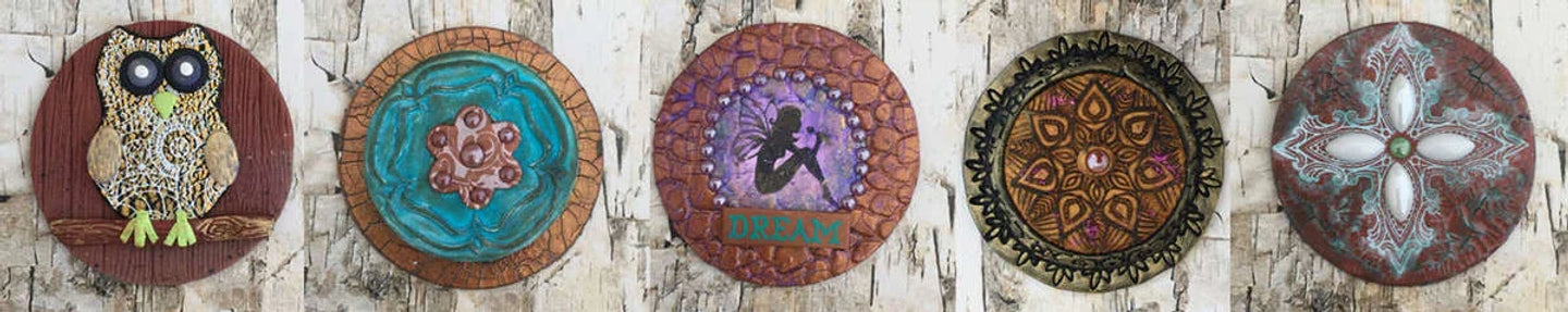 Imagine getting a beautiful piece of art in the mail and sharing your art with someone who will appreciate it. Artist Trading Coins are taking the mixed-media world by storm right now.So we thought it would be even more special to make them with polymer clay & mixed media.Once we got started making these super fun 2.5" circle COINS we couldn't stop!They are to be swapped, traded, and shared- never sold. What a fun way to try a new technique, test out a style or color combination, use new tools, or create something to share with a friend! We love making these unique pieces of art so we thought we would share them with you so we wrote this fun book!We will also have a line of specialty cutters & silkscreens!