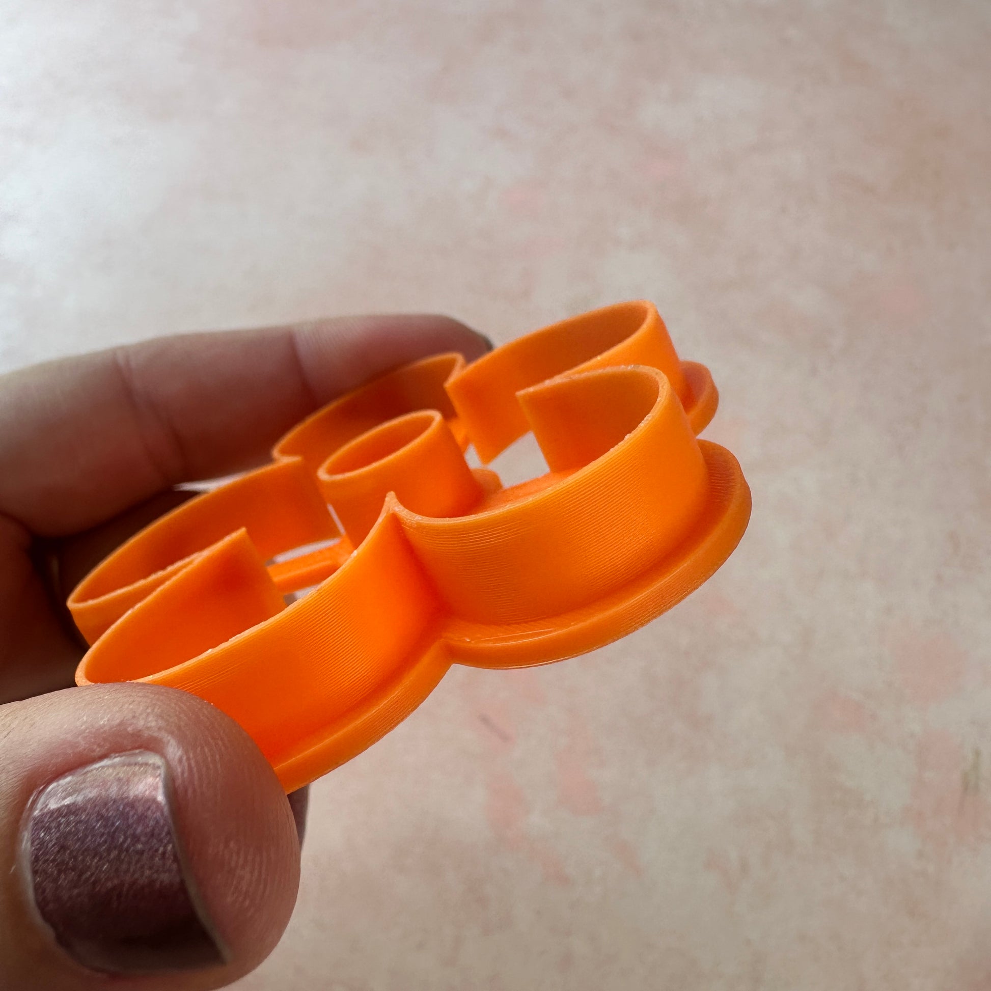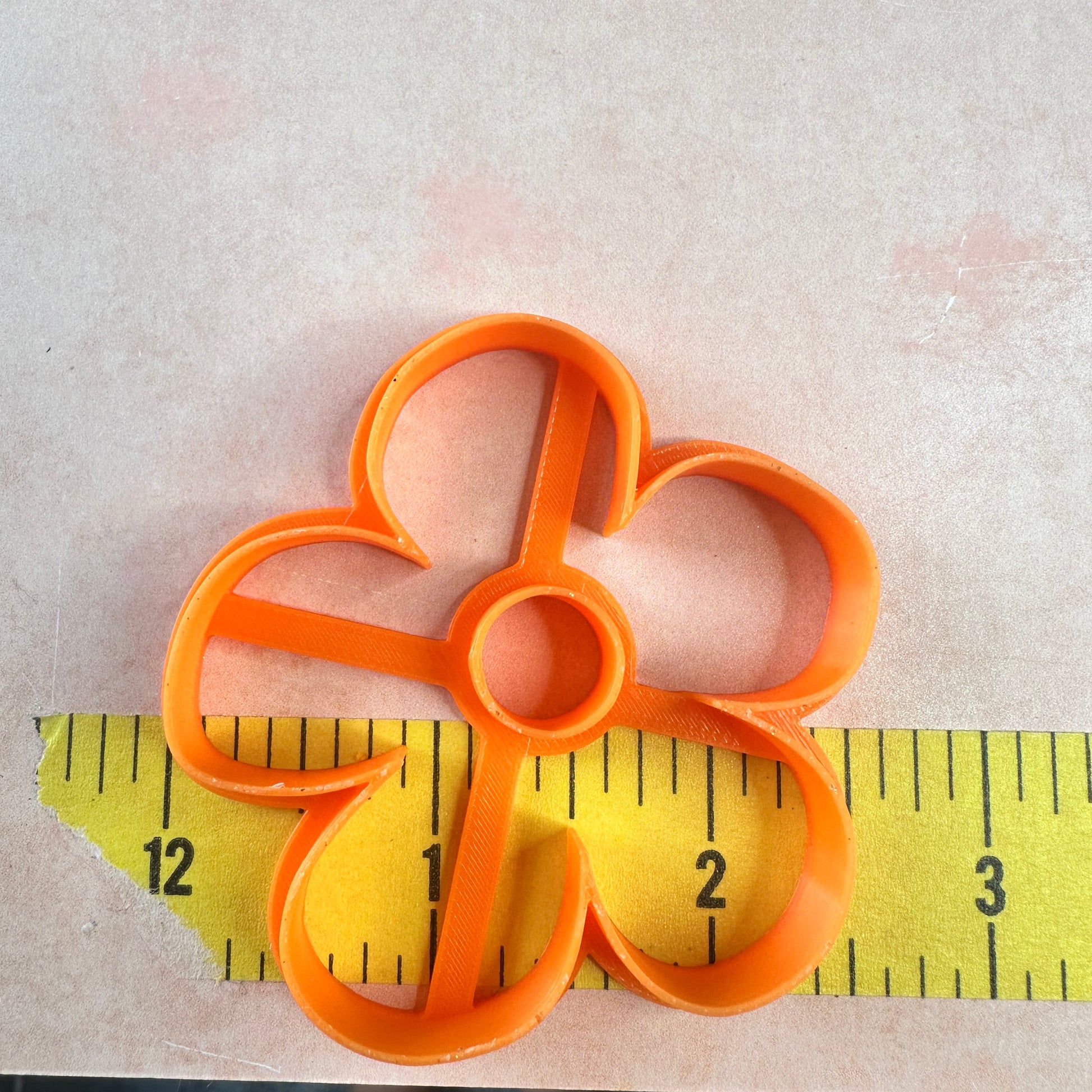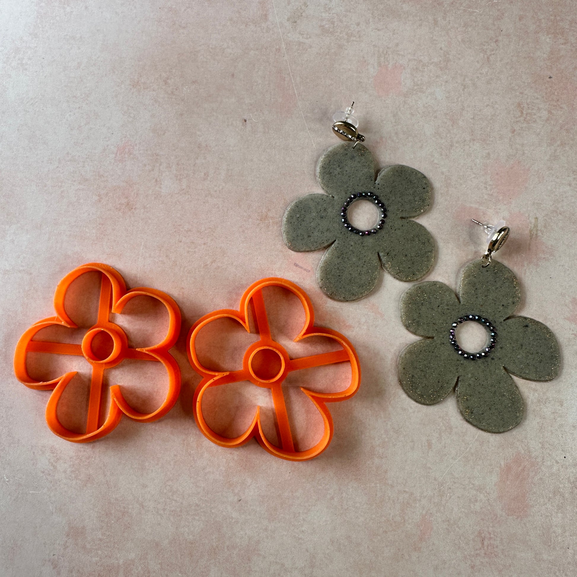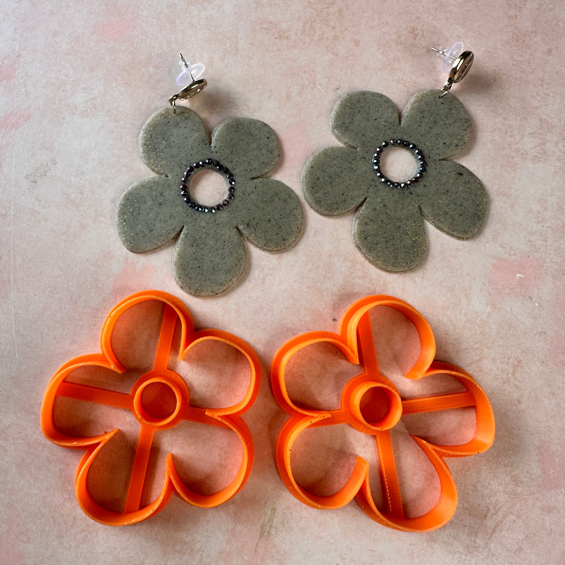 This PLA polymer clay earring and statement jewelry cutter set features a lopsided flower shape that is large- it's 2.5" from top to bottom.