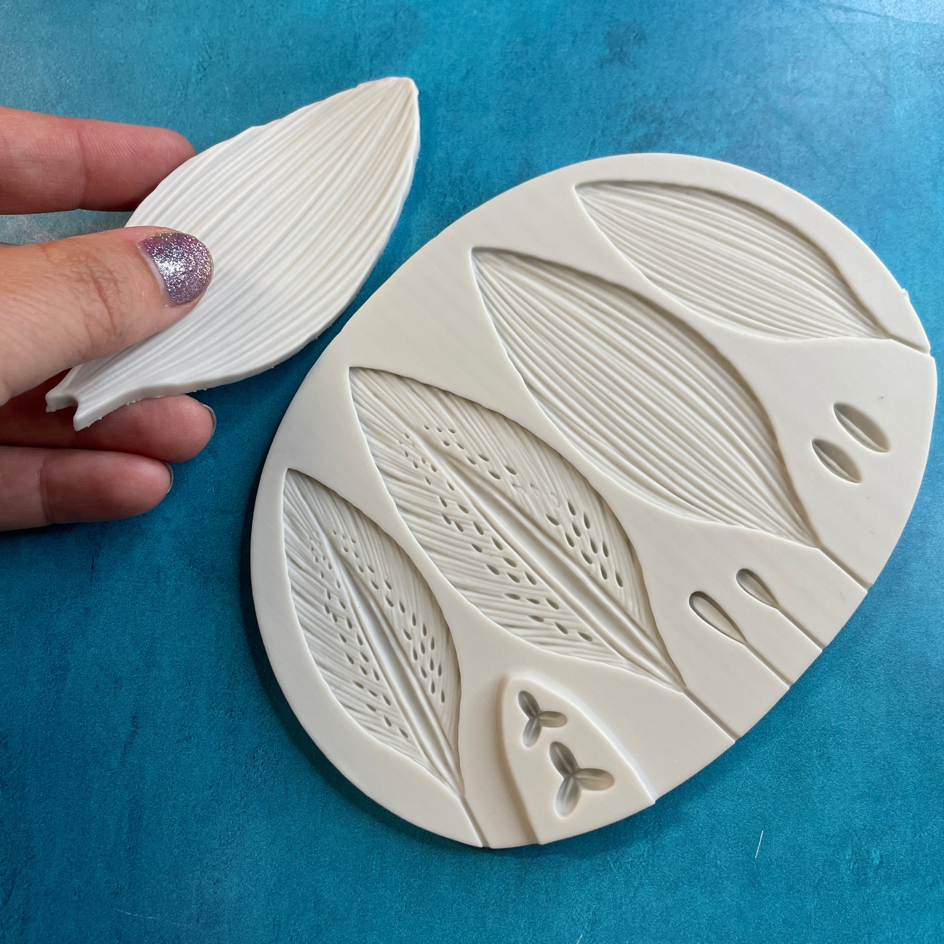 Create gorgeous clay leaves and petals with this fun Leaf and flower petal Polymer Clay press Mold! This mold is the perfect tool for giving your pieces a detailed look - with its two-sided design, you'll have the leaf-iest of leaves and the petal-iest of petals! (No trees were harmed in the making of this mold!)