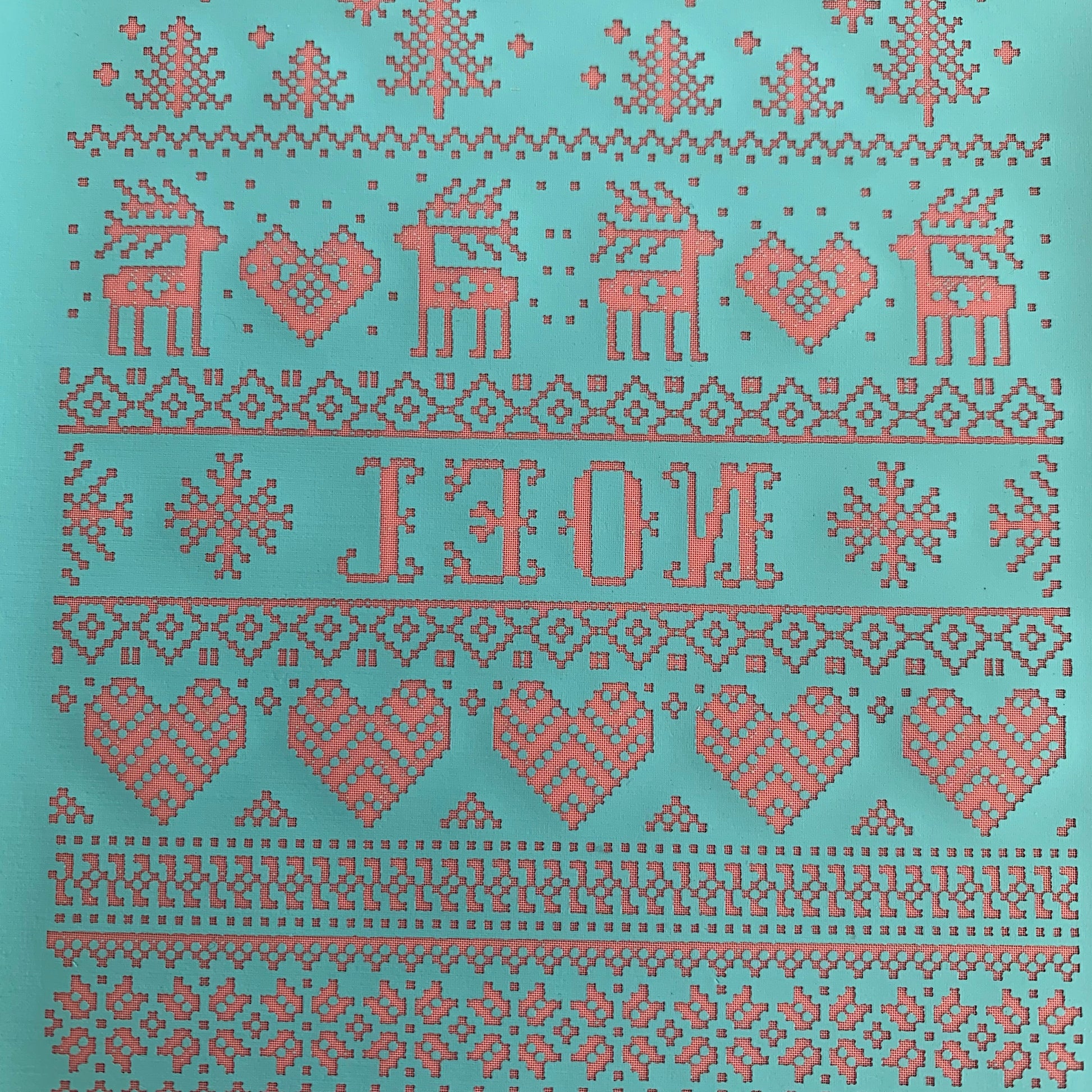 Knitted Noel Reindeer Knit Hearts Tree Silk Screen Stencil for Polymer Clay, Art Jewelry, Mixed Media