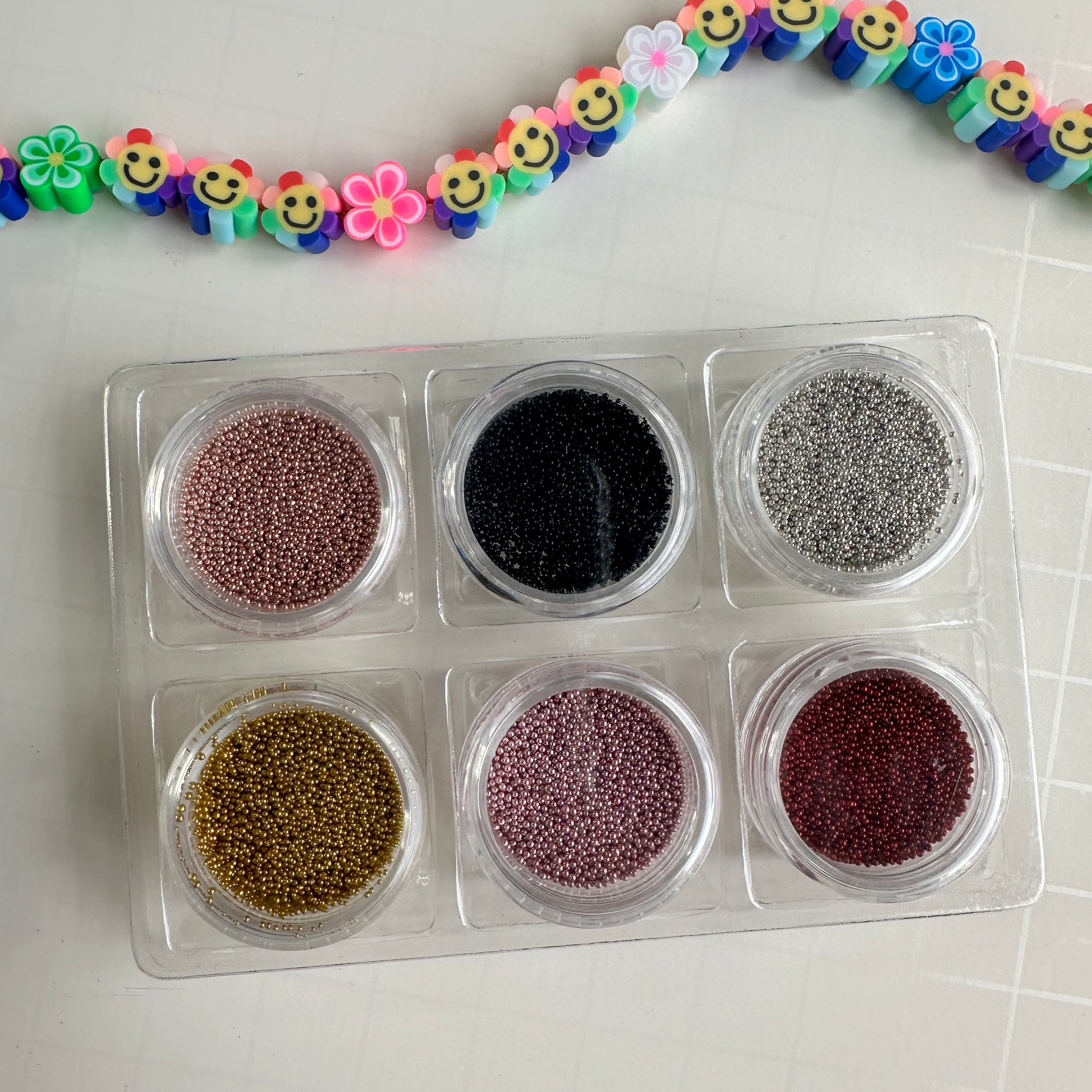 Metallic Micro Caviar No-Hole Beads – Set of 6 for Polymer Clay & Mixed Media