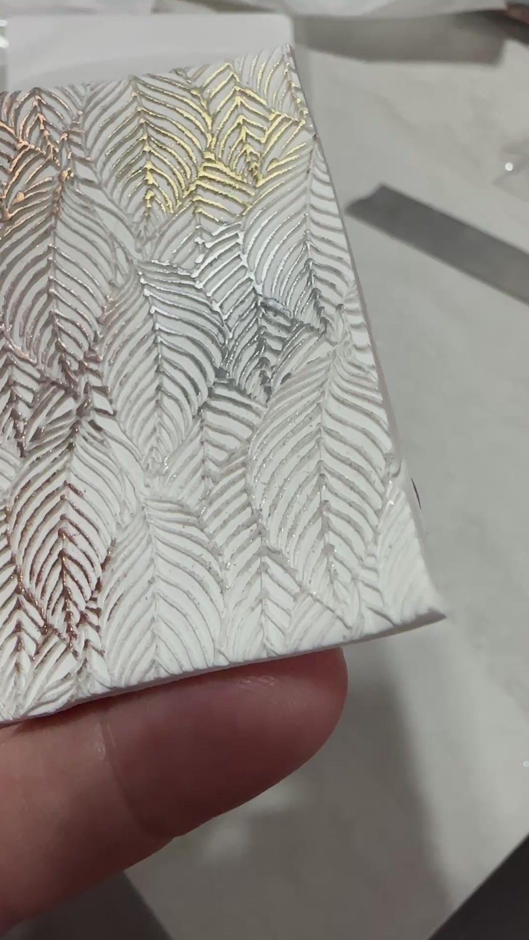 Dusting over textured surfaces to highlight designs
