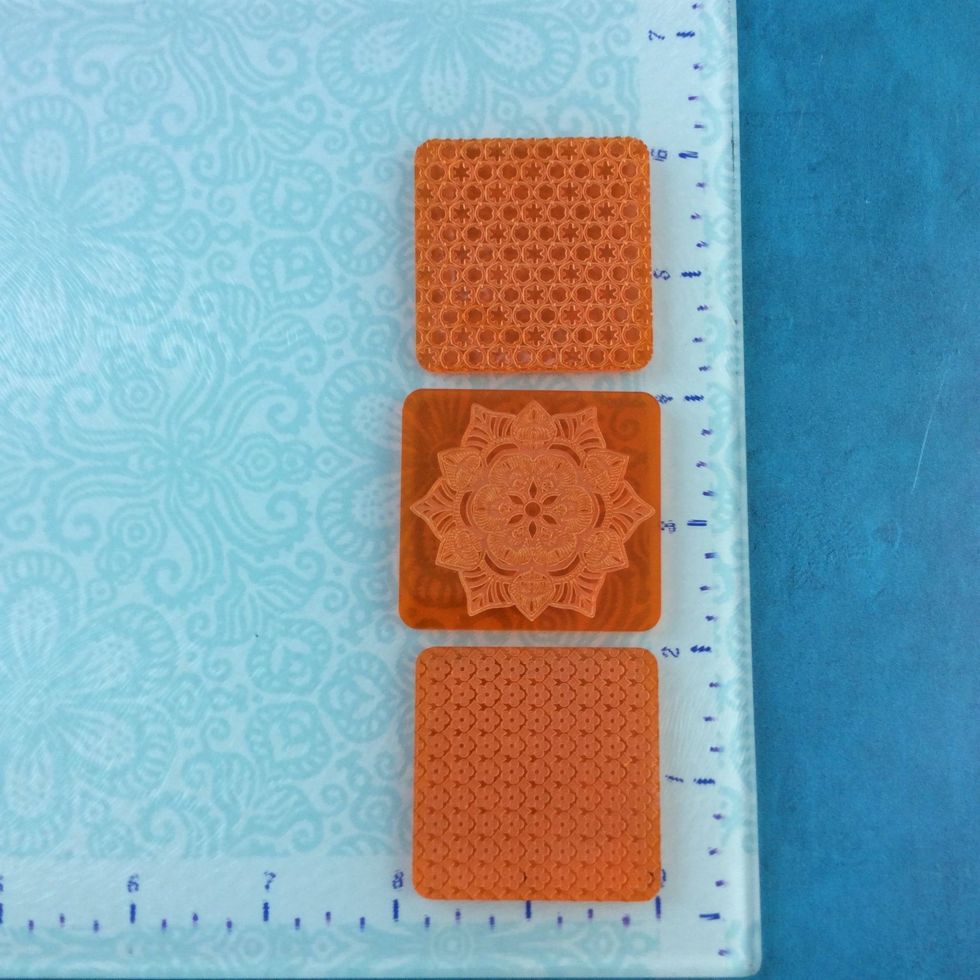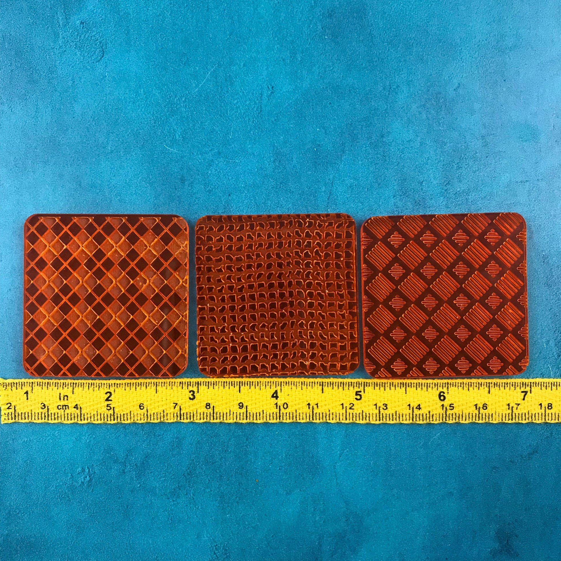 These discs make it easy to stamp all the details in your polymer clay. They come in a set of 3 discs that coordinate nicely together for fun animal print looks. They are 2 inches by 2 inches. Mix them up for for so many unique looks!