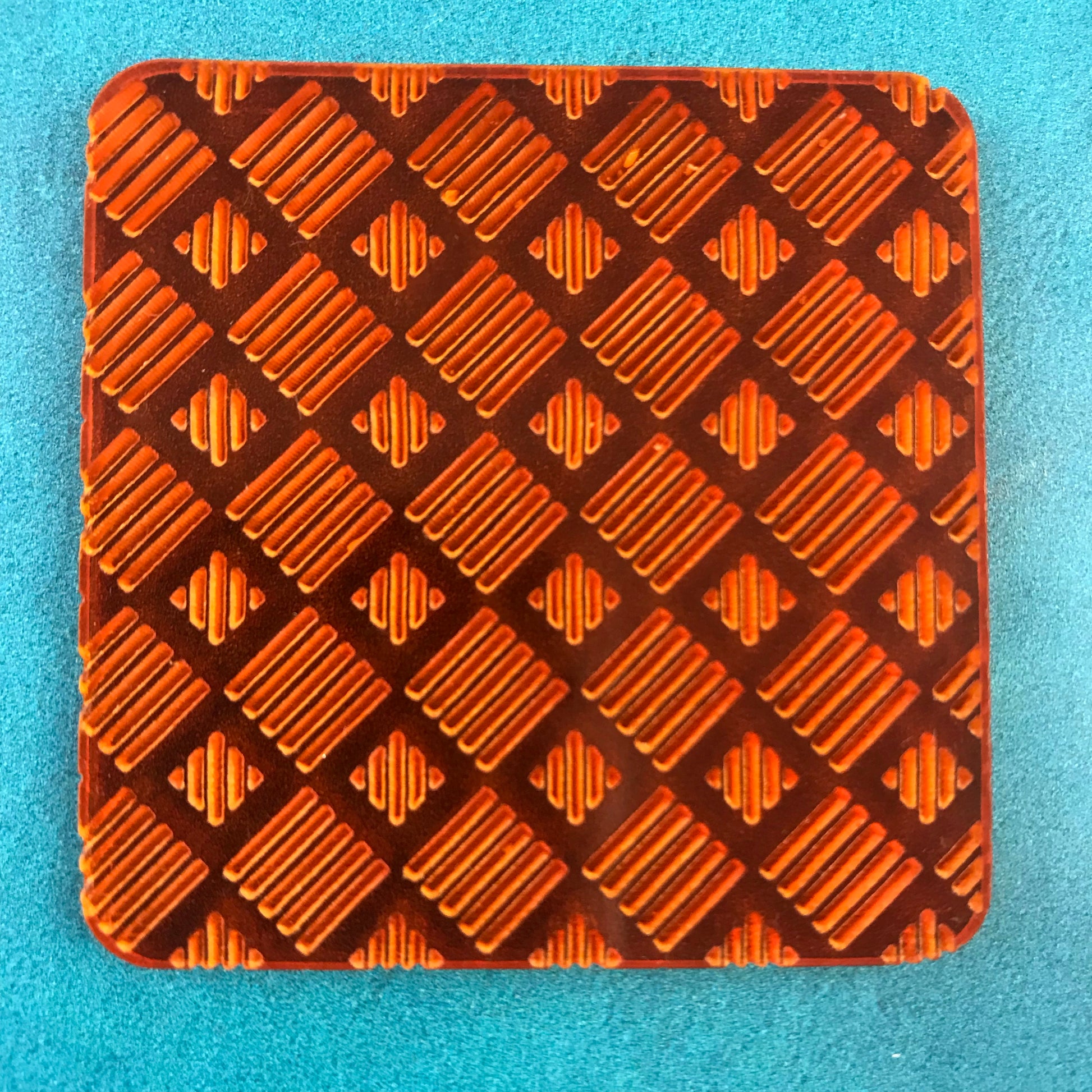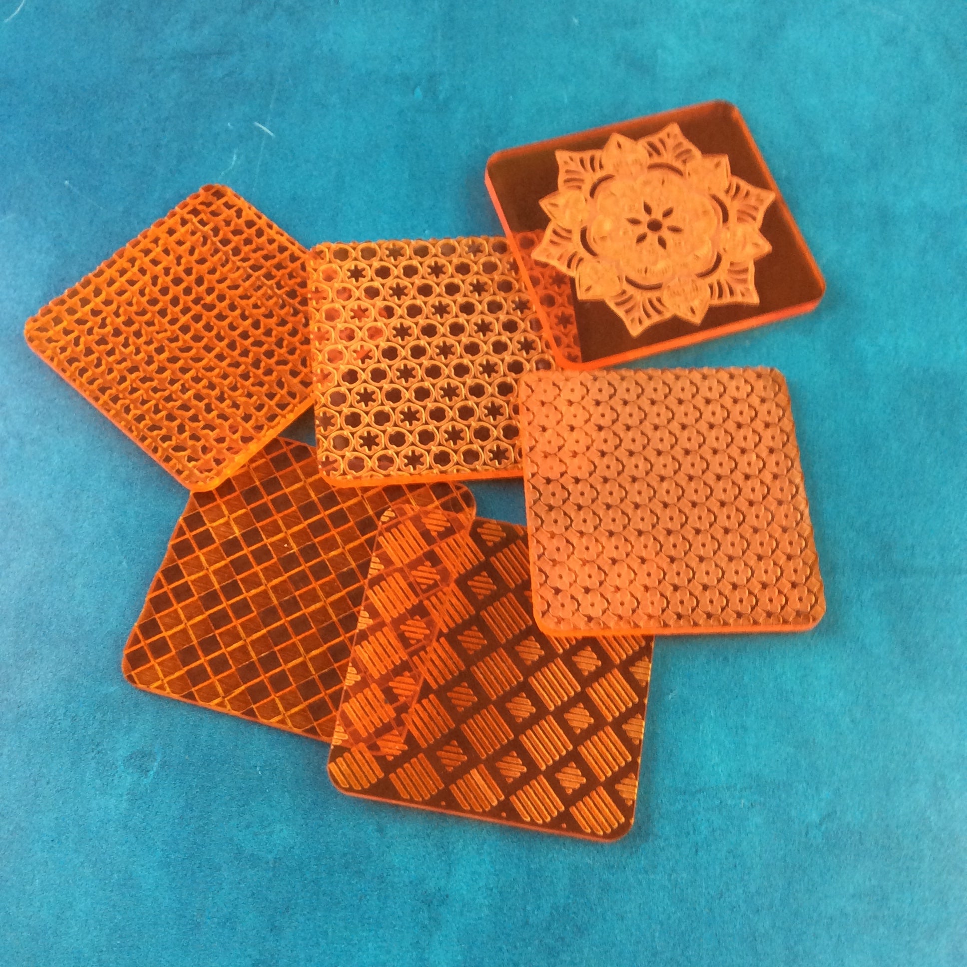 The Deco Disc works great to texture and stamp polymer clay. Great for polymer clay projects, art jewelry, mixed-media, and even for use with gel printing plates for unique designs. A fun product we are releasing that we think you are going to love! An image is etched into the disc and you can reveal it by pressing and releasing your sheet of clay. The backs of these acrylic discs are flat and shiny- they make a perfect tool for reducing canes without waste!