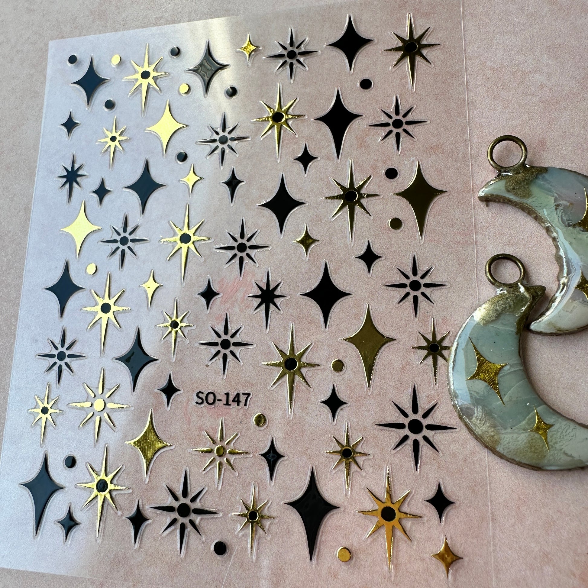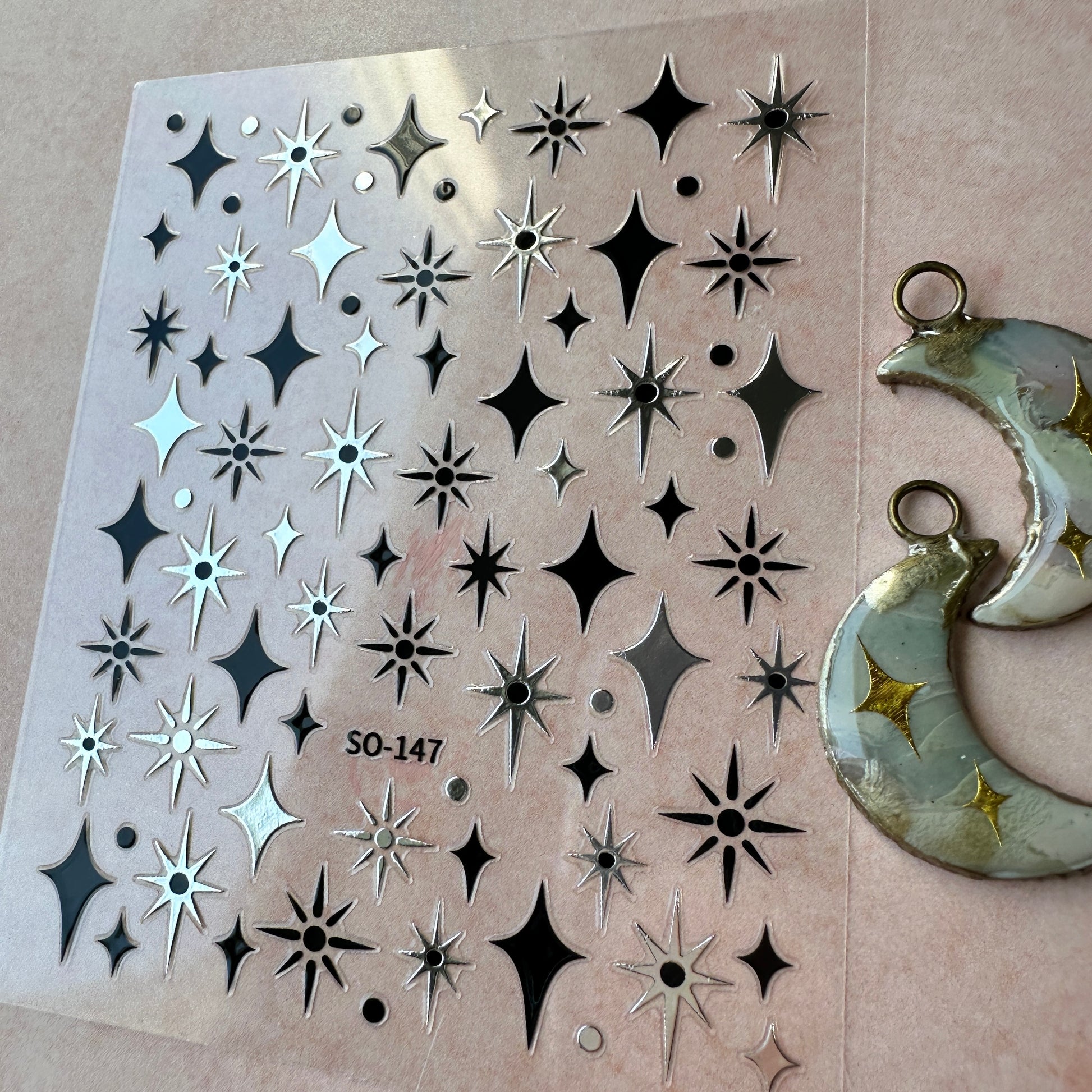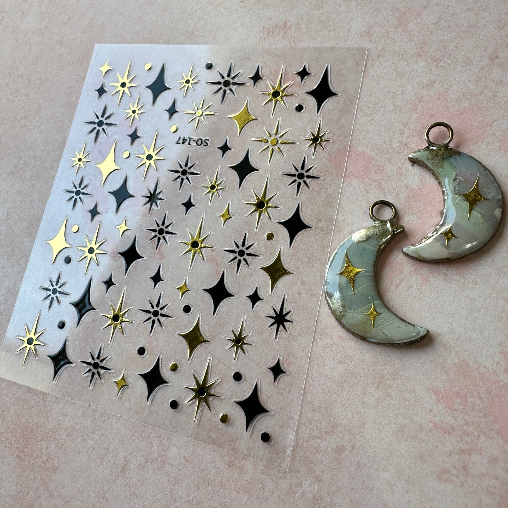 Multi Celestial Sparkle Stickers embed in resin and liquid clay - black + white