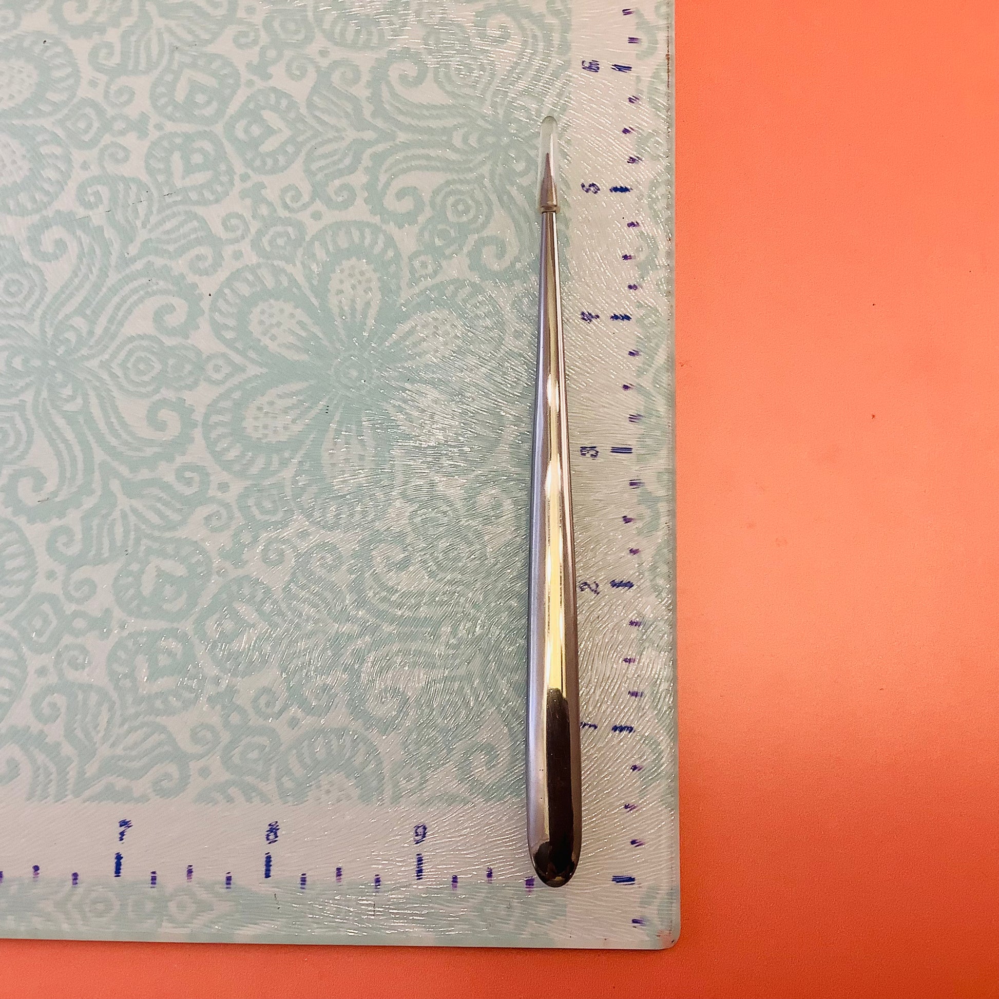 This is a great tool for creating small details on clay slabs, it has two ends and is gently curved. One end comes to a point for fine details on flower petals and more, the other comes to a wide curved edge for creating frills, petals, and getting into areas your fingers can't reach. The point on this one is especially nice for picking up those tiny petals and placing them on the slab with an indentation.