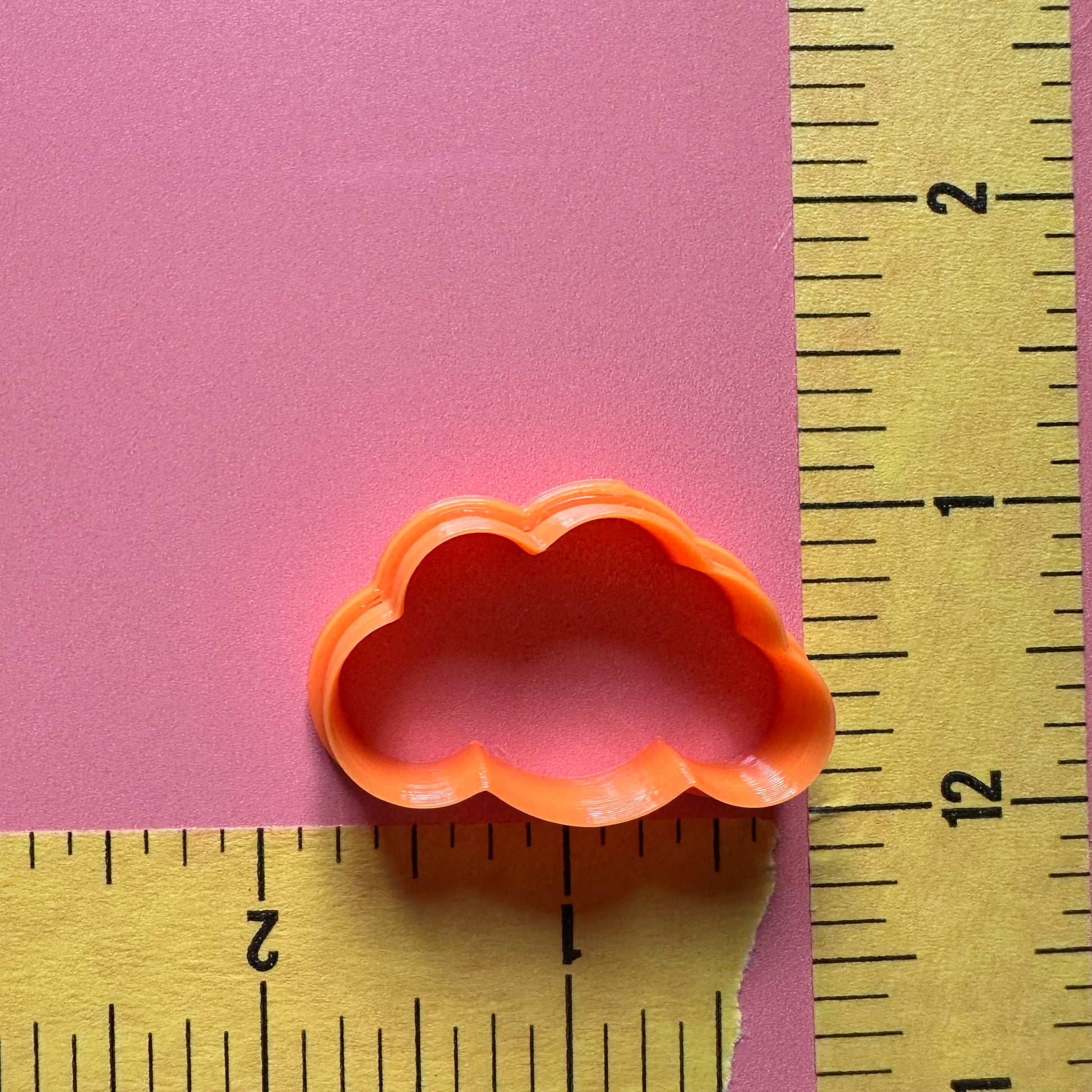 Set of two mirrored cutters to create clay designs, jewelry, and earrings. About 1" tall and 1.75" wide. Perfect for rain clouds, stormy designs, and more. PLA 3d printed plastic, 3mm sharp cutting edge.