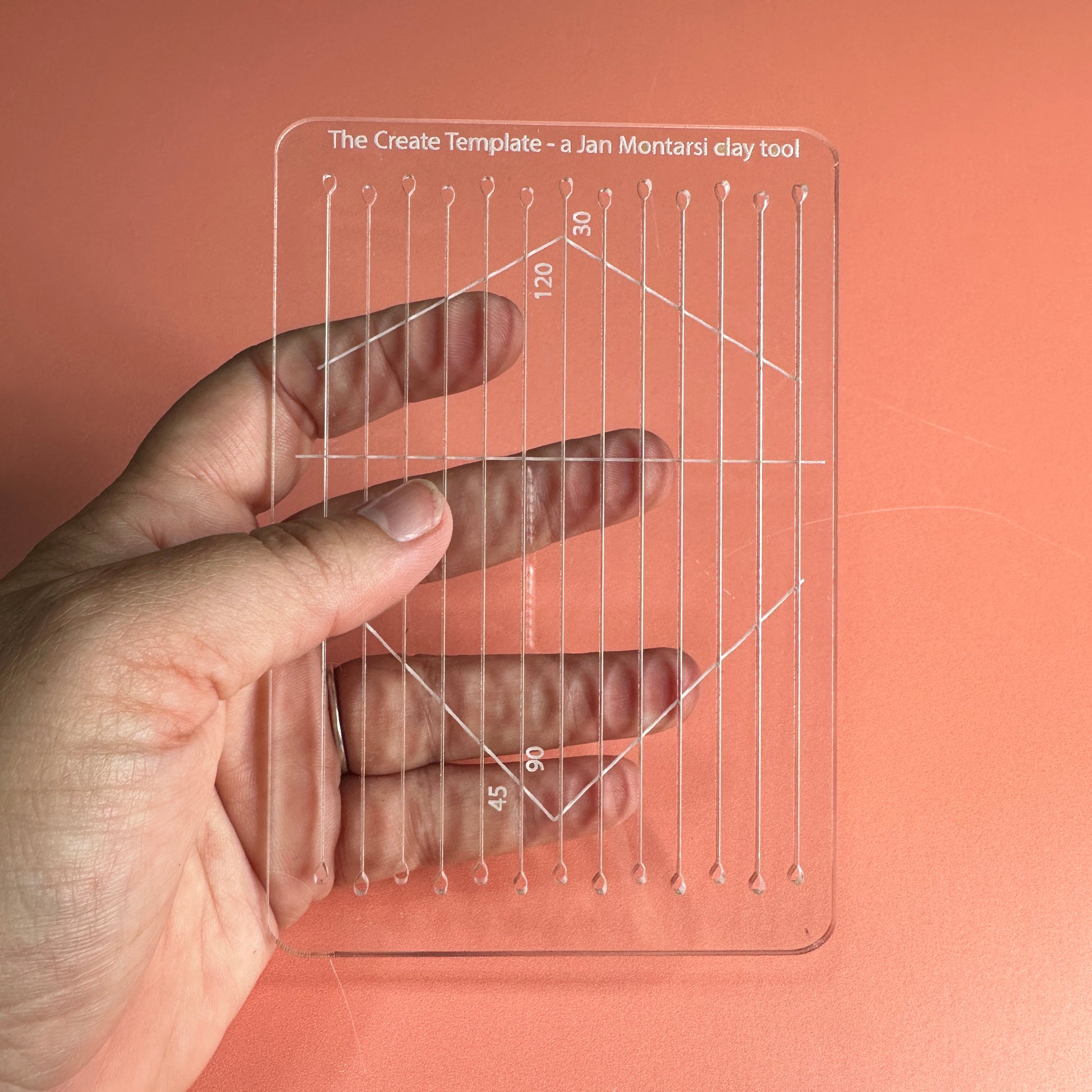 Behold The Create Template for your quilted hexagon, triangle, and diamond dreams! Get ready to foray into a world of artistic geometric brilliance with this nifty tool! Create beautiful and complex looking clay surface designs with ease and make your projects shine!