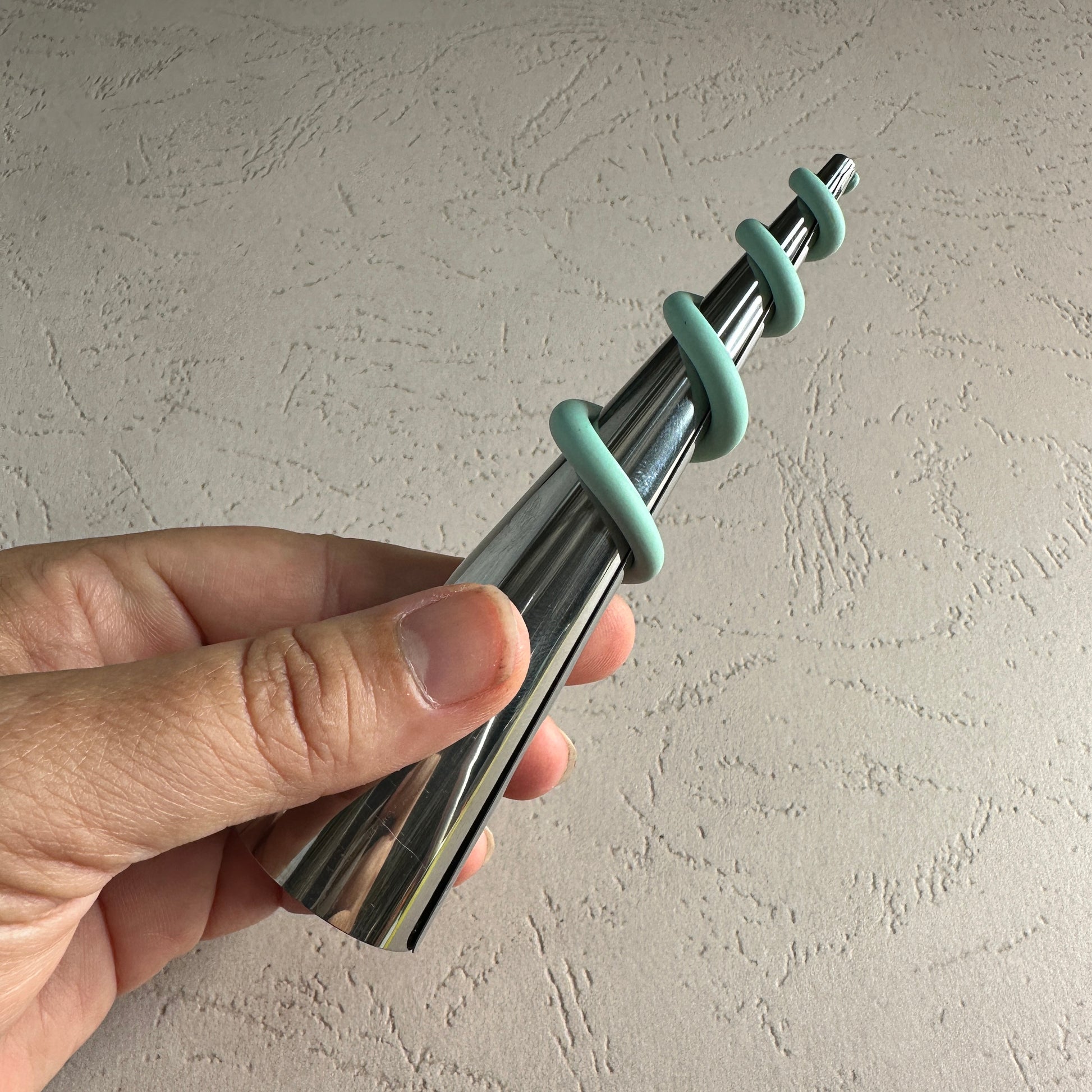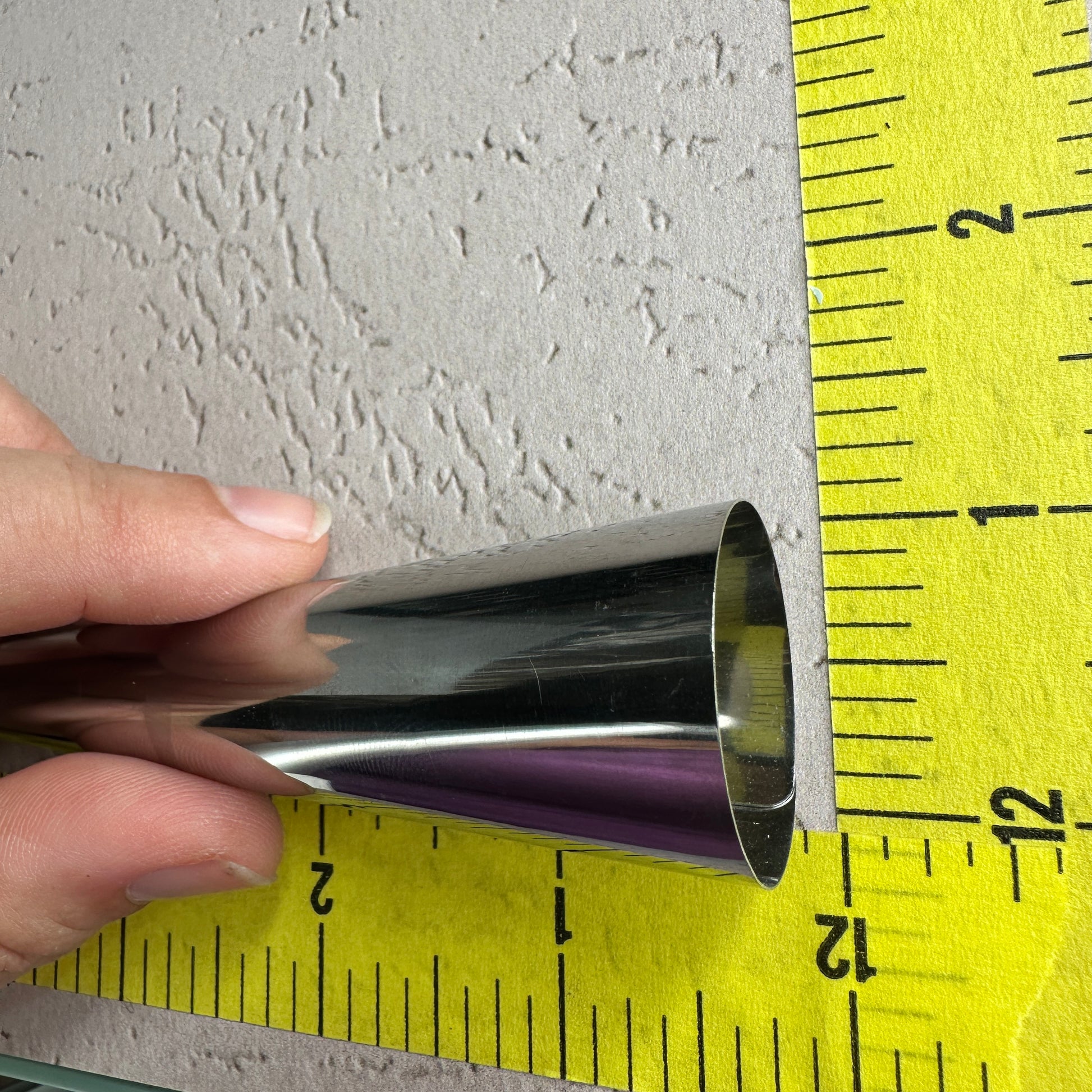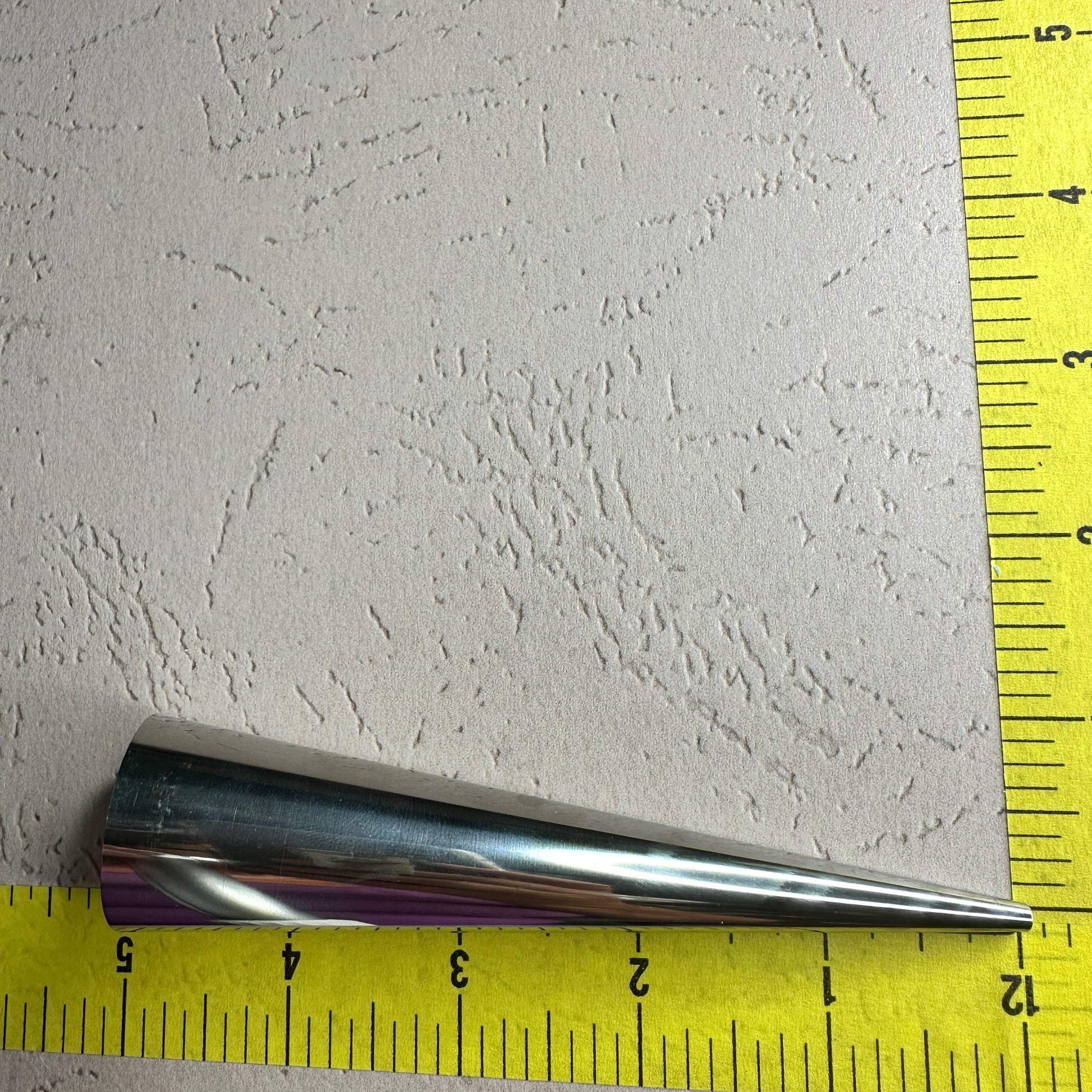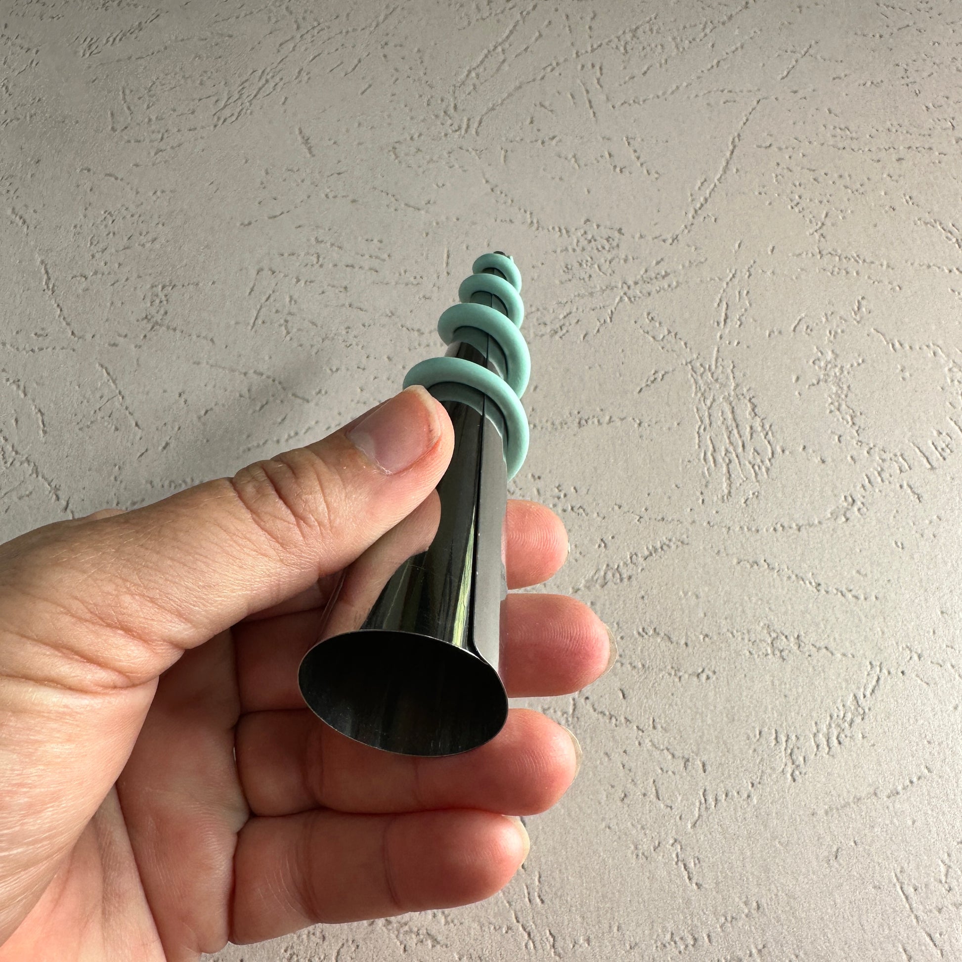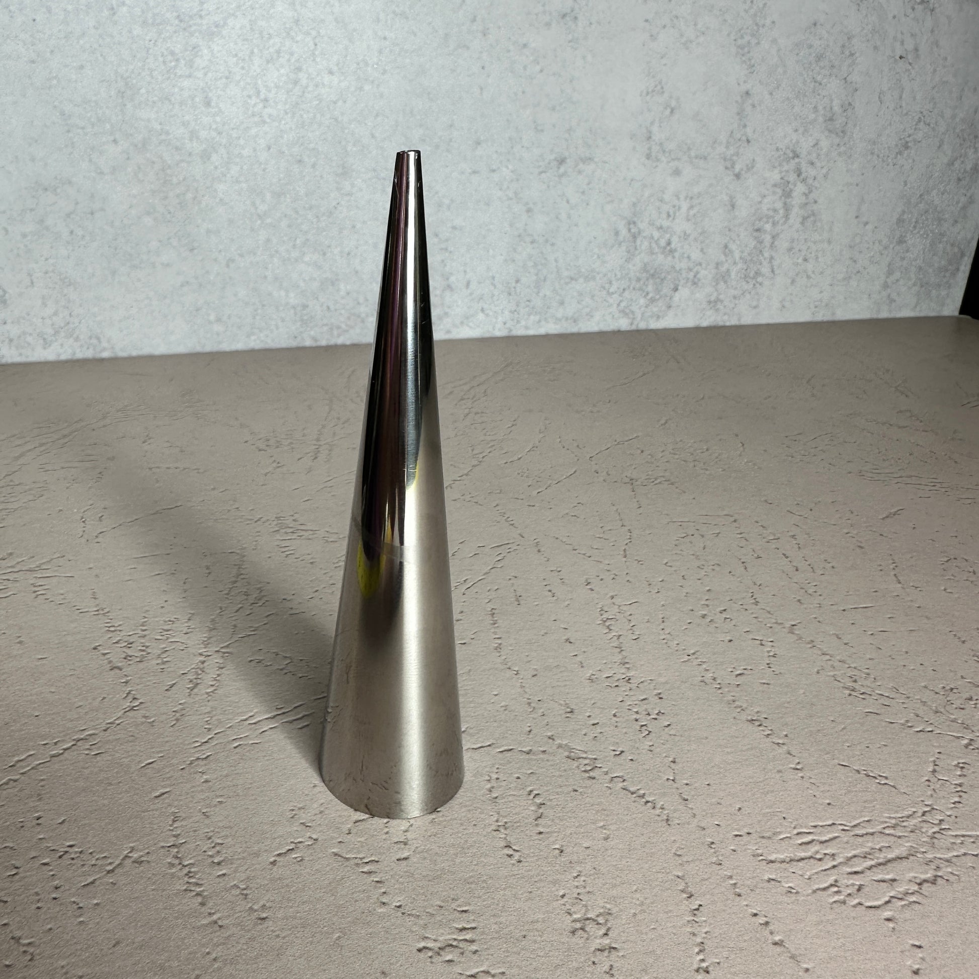 This cool metal cone can be used for so many things, including ice cream cones, fairy trees, spiral ornaments, and anything else you dream up. Just form your polymer clay, bake, and pop the clay piece off the form. A little over 1 inch wide at the base, tapering to a point.