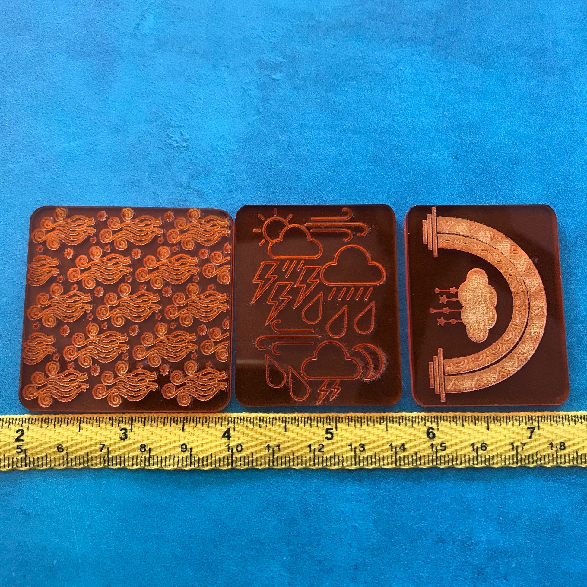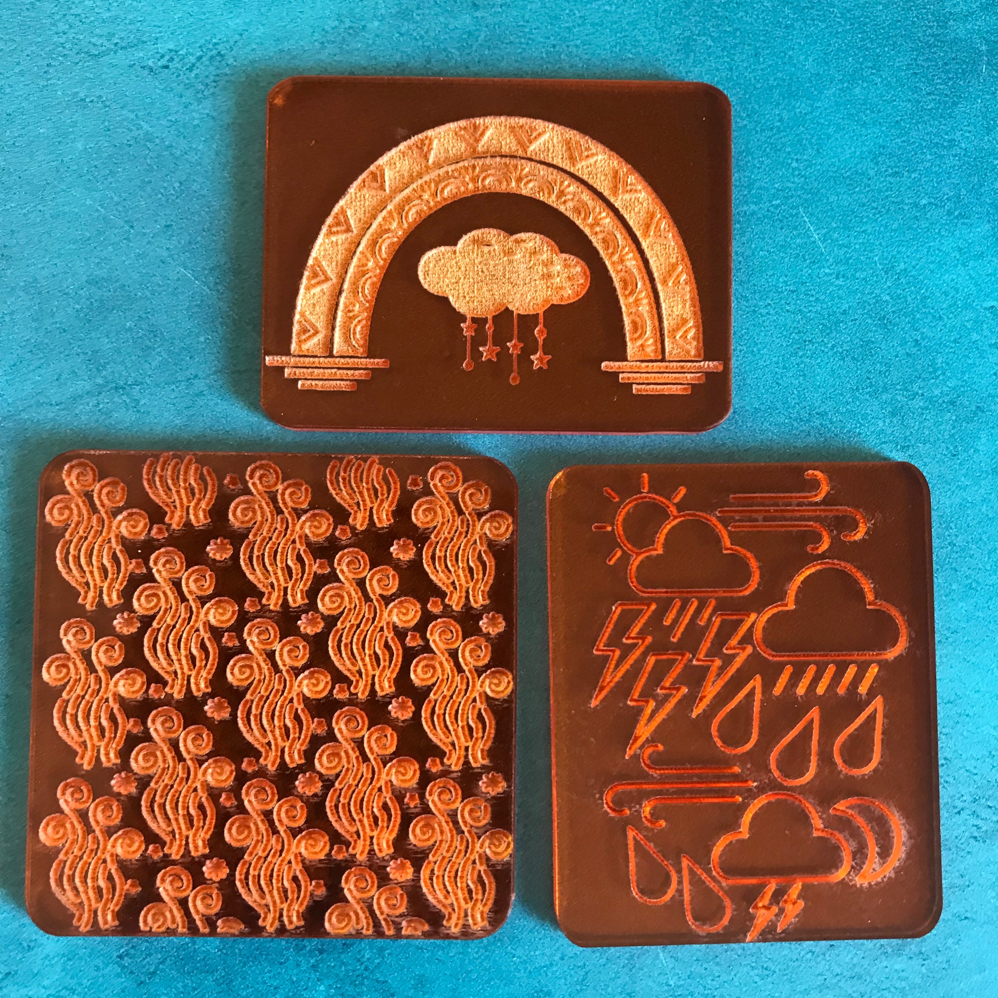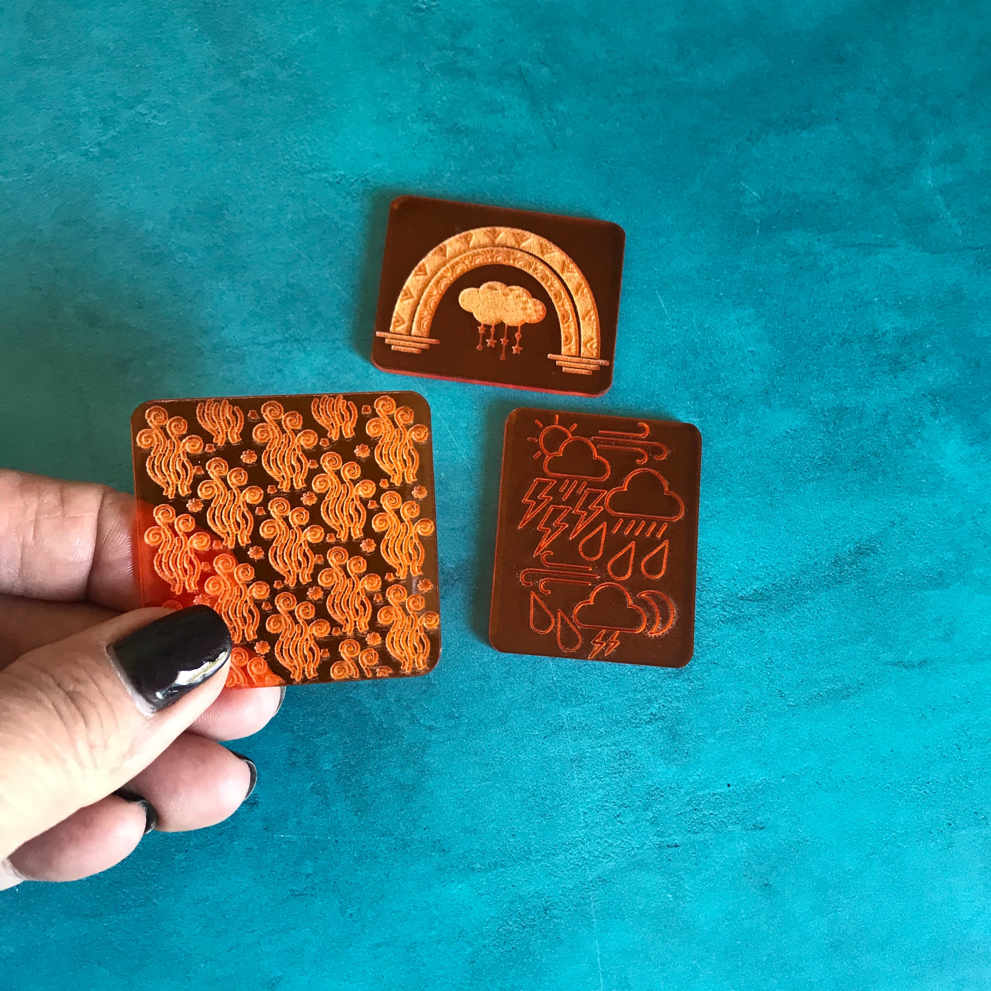 These discs make it easy to stamp all the details in your polymer clay. They come in a set of 3 discs that coordinate nicely together for fun animal print looks. They are 2 inches by 2 inches. Mix them up for for so many unique looks!