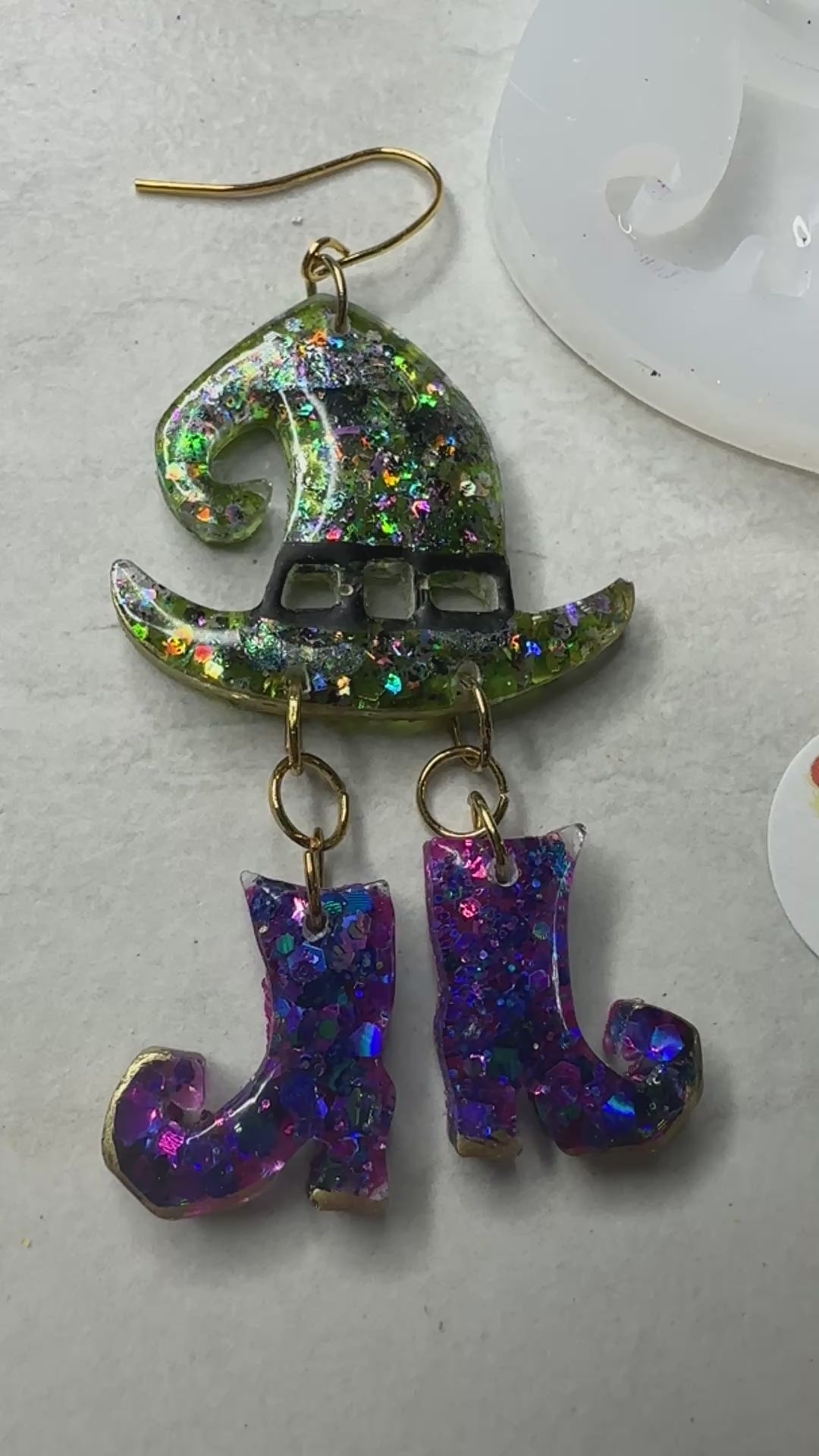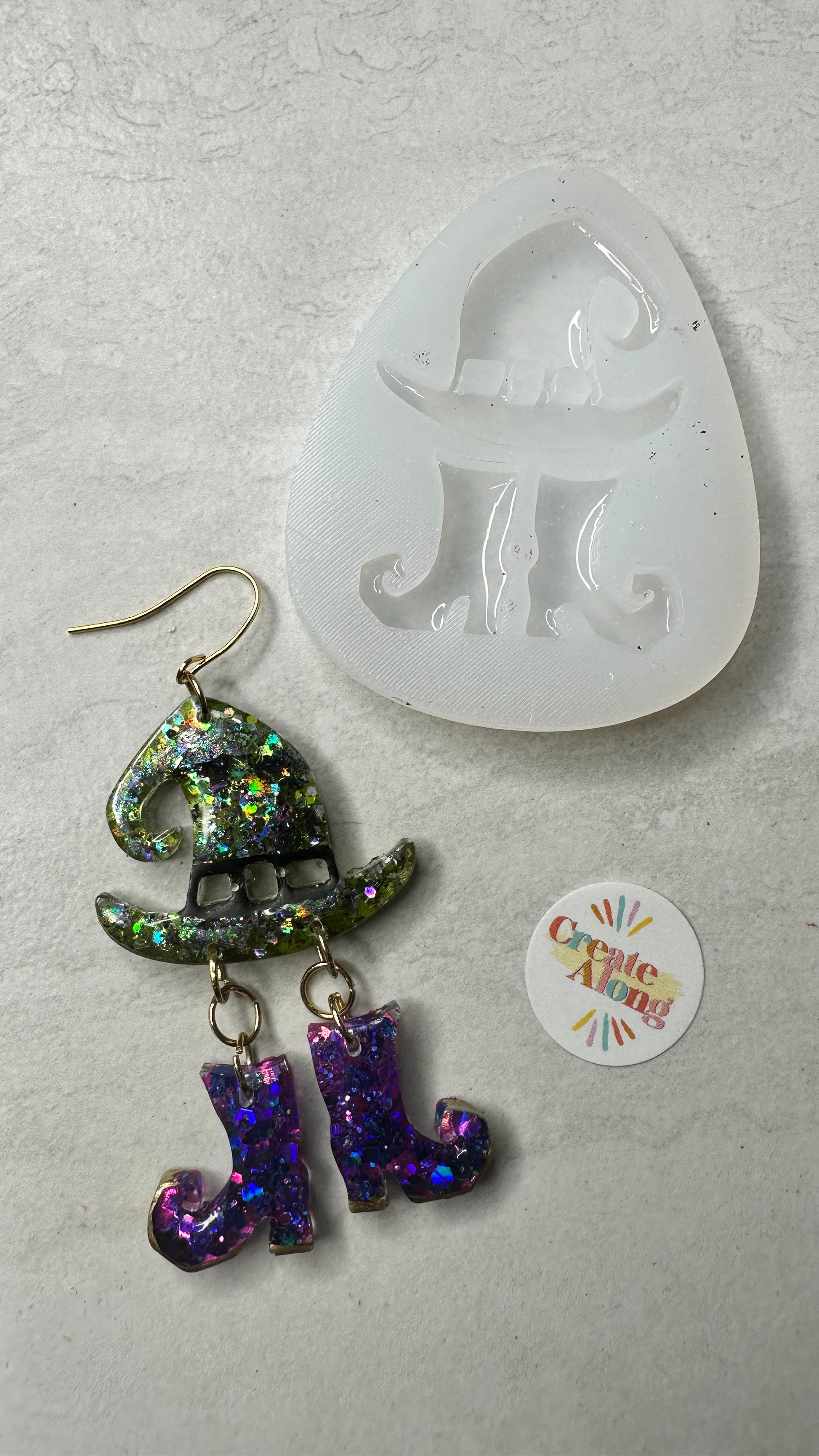 Get into the Halloween spirit with this Witch Hat & Feet Mold! This versatile silicone mold makes adorable witch hats and curled shoes/feet, perfect for crafting earrings, pendants, charms, keychains, and spooky embellishments.